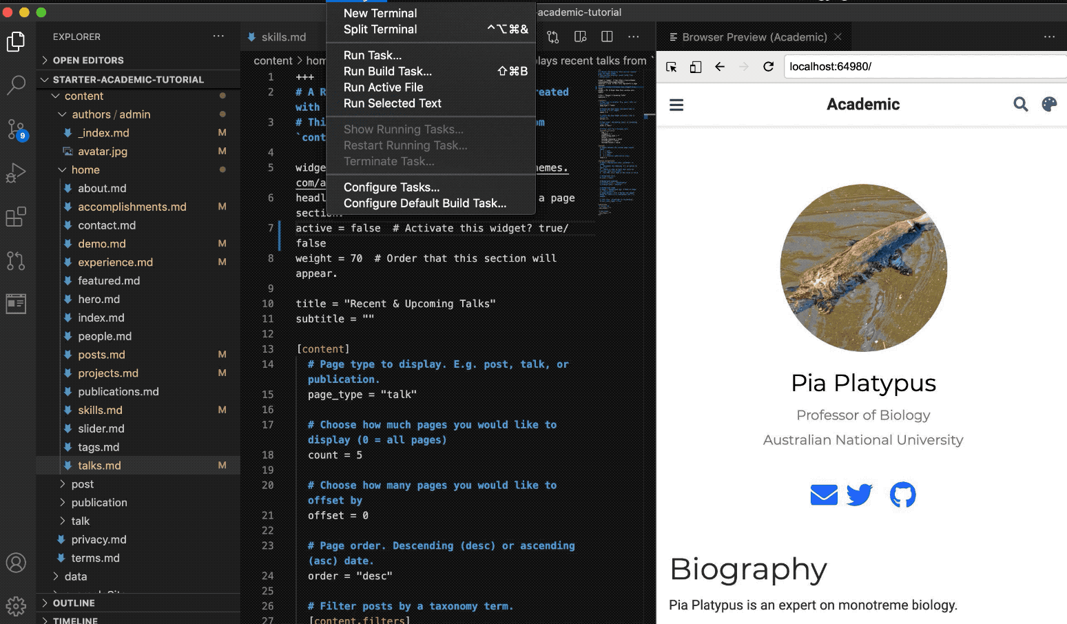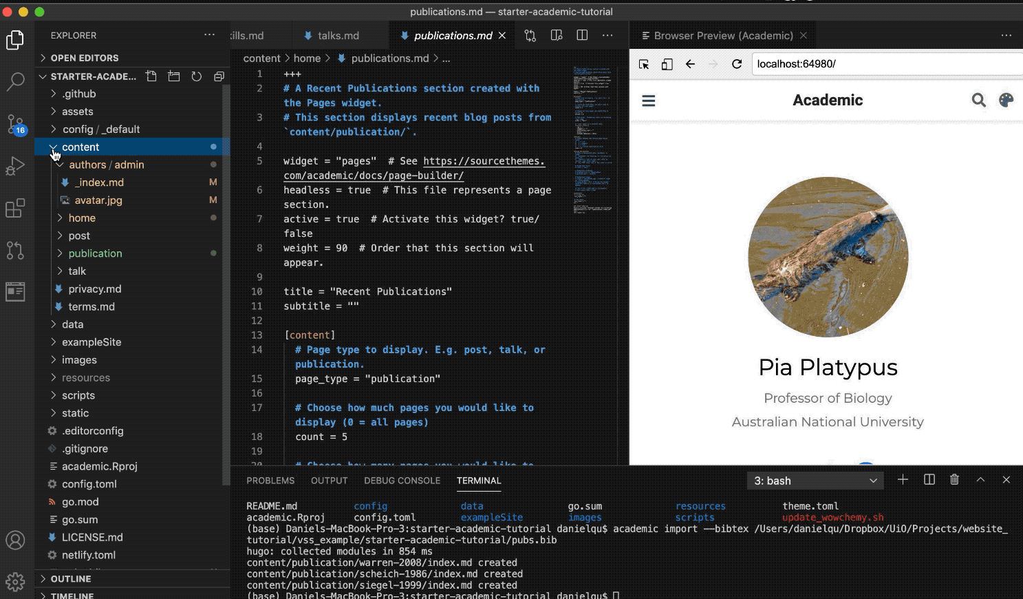 If you're an academic you need a personal website to share your publications, your research projects, and contact details. Without a personal website you're leaving citations, collaborations, and talk invitations on the table. This guide will walk you through how to make your own academic website for free in a non-technical manner.