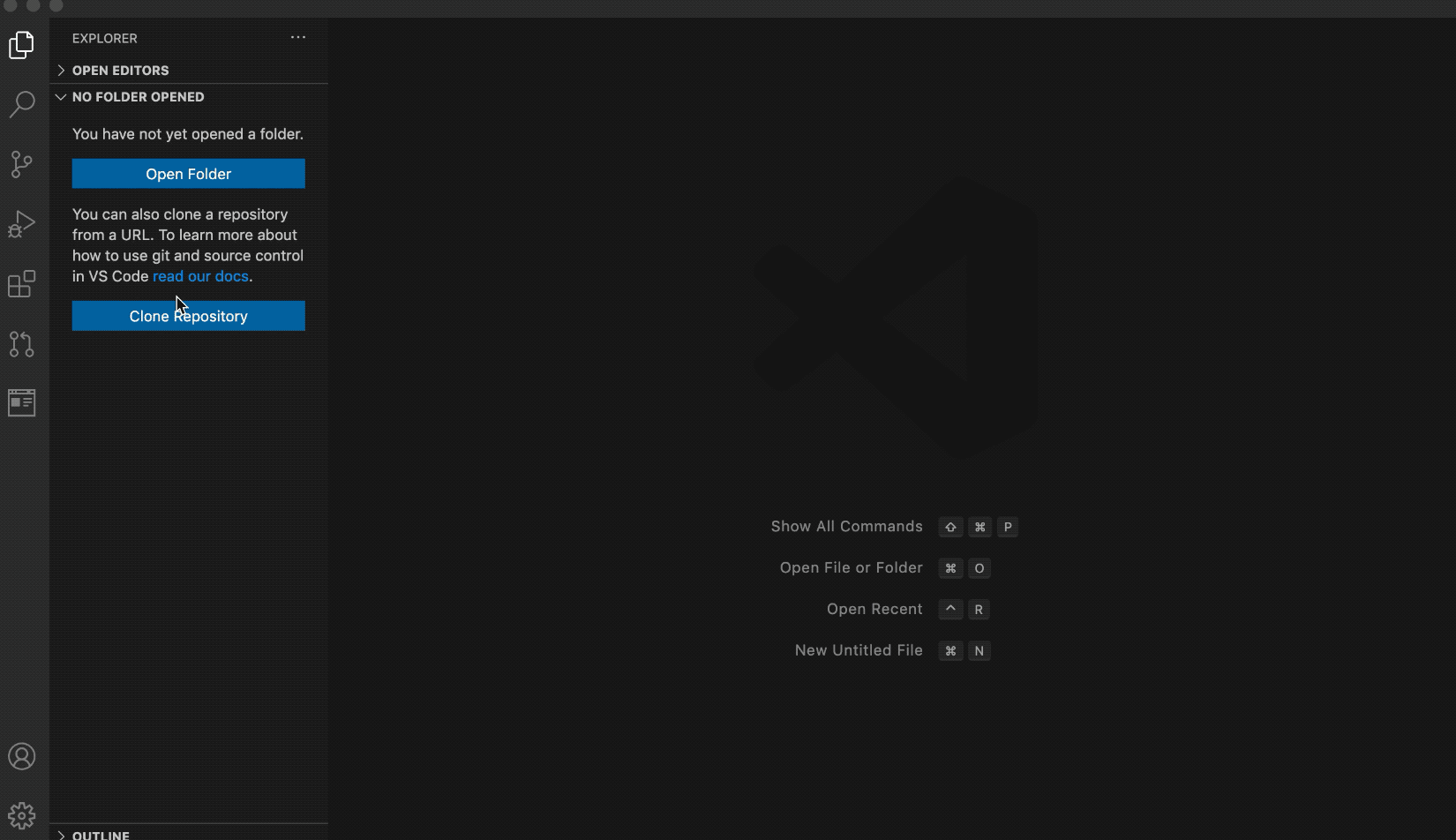 Now open up Visual Studio Code. If you've used RStudio before, you should be fairly comfortable with the set up. But if you haven't, it's fairly intuitive.