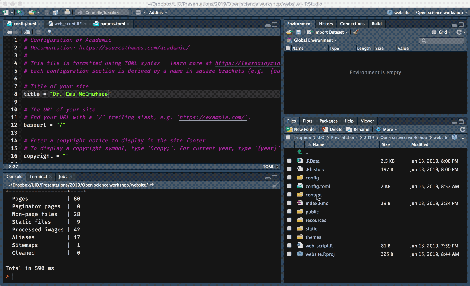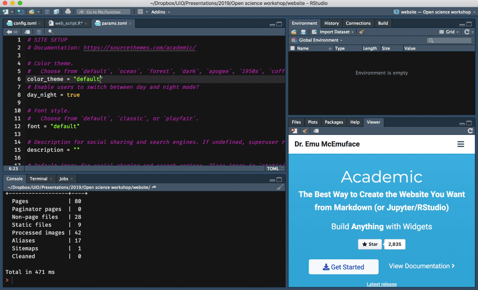 This tutorial will walk you through how to make your own website for free using the blogdown package in RStudio.